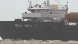 شہر قائد کے ساحل پرپھنسے بحری جہاز ہینگ ٹونگ 77 کی مہمان داری کے لیے کے پی ٹی کی جانب...