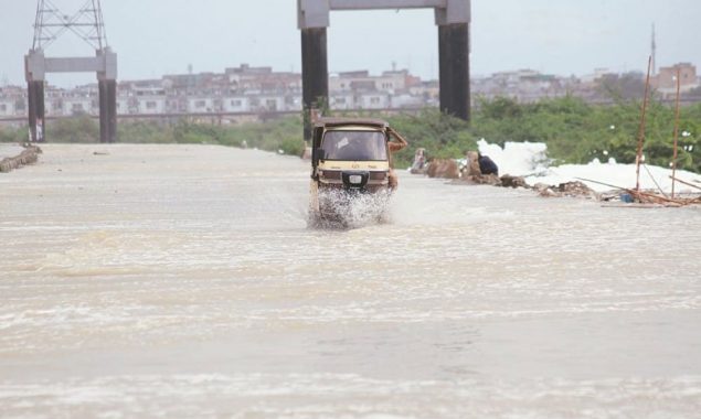 کراچی میں صبح سے ہلکی اور تیز بارش کے بعد کورنگی کازوے ٹریفک کی آمد و رفت کے لیے بند...