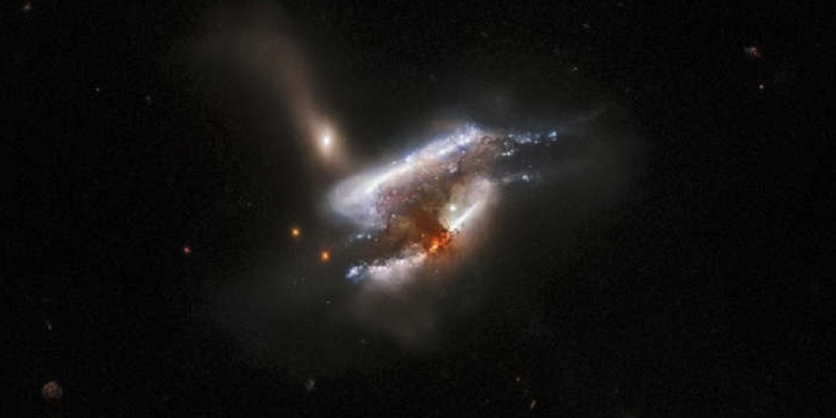 خلاء میں موجود ناسا کی ہبل اسپیس ٹیلی اسکوپ نے کروڑوں نوری سال کے فاصلے پر موجود تین کہکشاؤں کے تصادم کی زبردست تصویر کھینچی ہے۔