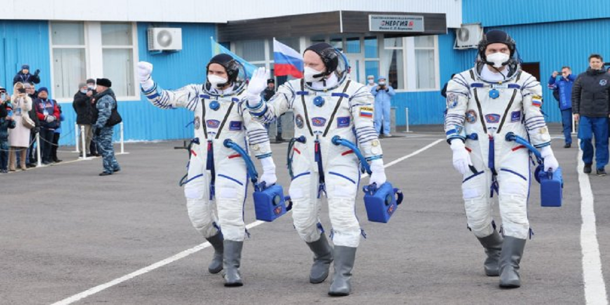 خلاء بازوں کو روس نے اپنے سویُوز اسپیس کرافٹ پر قازقستان میں قائم روس کے بیکونور کوسموڈروم سے روانہ کیا۔
