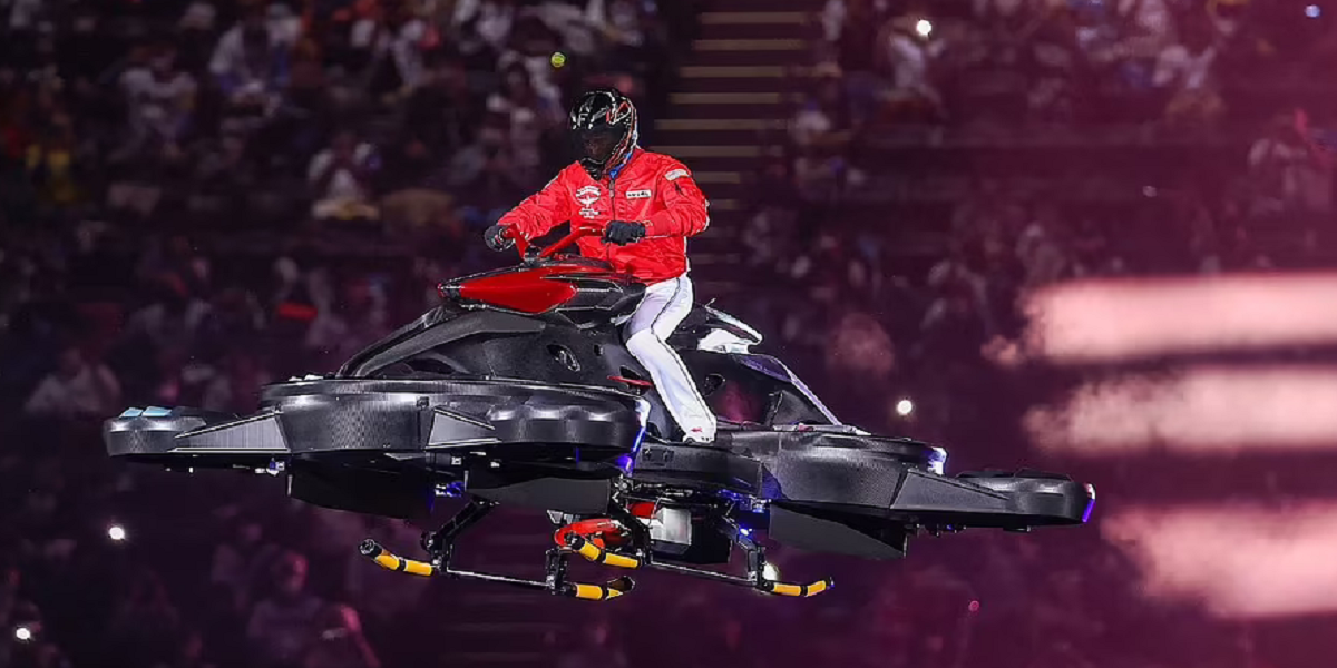 یہ فضائی موٹر بائیک 40 منٹ کے دورانیے تک 60 میل فی گھنٹہ کی رفتار سے اڑ سکتی ہے۔