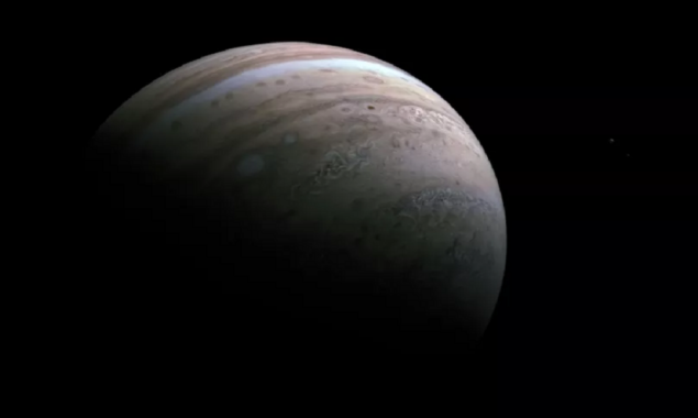 ناسا کی جانب سے شیئر کی جانے والی نئی تصویر میں مشتری کے جنوبی ہیمسفیئر کا شاندار نظارہ دِکھائی دے رہا ہے اور اس کے کئی چاندوں میں سے دو دائیں جانب فریم میں دِکھ رہے ہیں۔