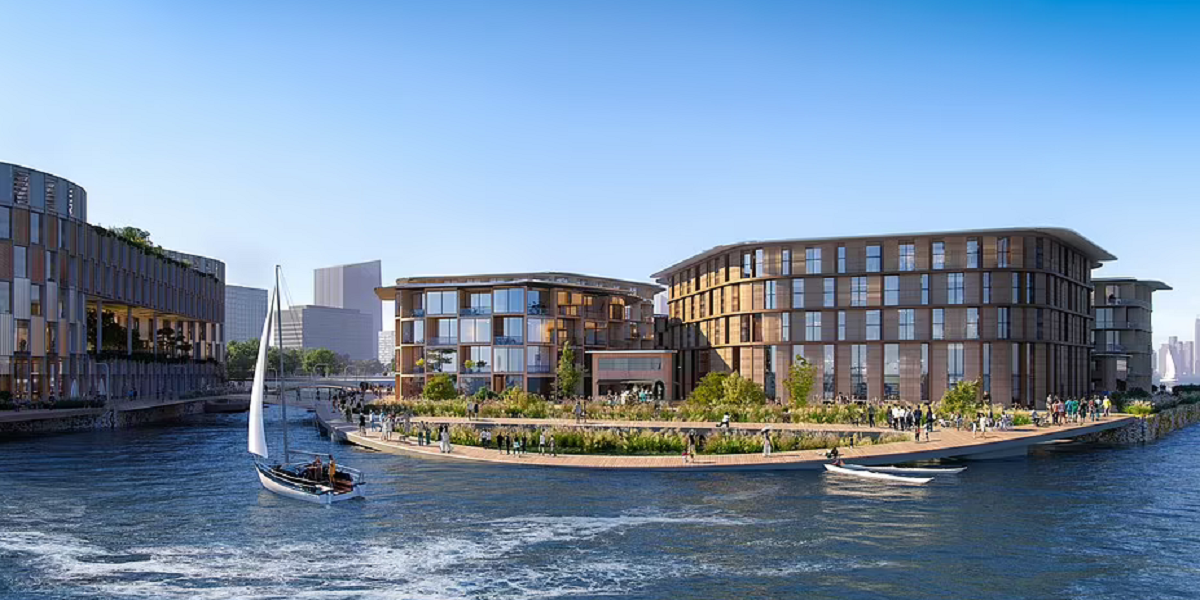 تصویر میں دِکھایا گیا کہ کس طرح آپس میں جُڑے پلیٹ فارم 15.5 ایکڑ پر بنے ہوں گے اور ان میں 12 ہزار لوگوں کے رہنے کی گنجائش ہو گی۔