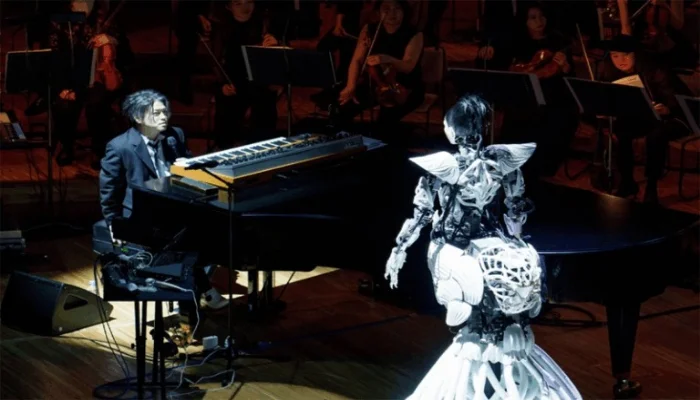 کیئچیرو شیبویا کی ’اینڈرائیڈ اوپرا مرر، ڈی کنسٹرکشن اینڈ ری برتھ‘ میں ایک ایڈوانسڈ ہیومنائڈ روبوٹ’اینڈرائیڈ ماریہ‘ نے 62 رکنی آرکسٹرا اور بدھ مت کے راگ کے ساتھ لائیو پرفارمنس دی۔