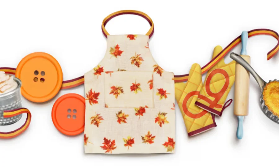 روایتی تھینکس گیونگ ڈوڈل میں اس سال دوبارہ مقبول کردار ٹائنی شیف کو دکھایا گیا جو اپنی چھوٹے سے کچن میں پکوان تیار کرتے ہوئے افراتفری سے نمٹتا ہے۔