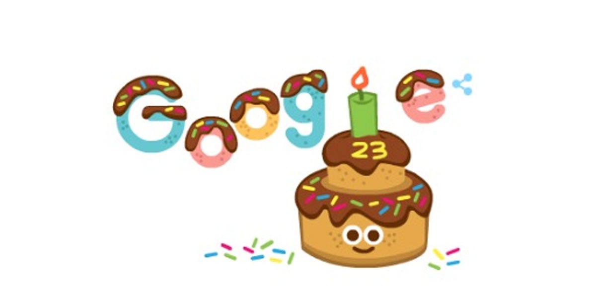 گوگل کی جانب سے اپنی 23ویں سالگرہ کی مناسبت سے جو ڈوڈل جاری کیا گیا ہے وہ ایک کیک کا ہے۔