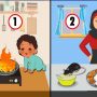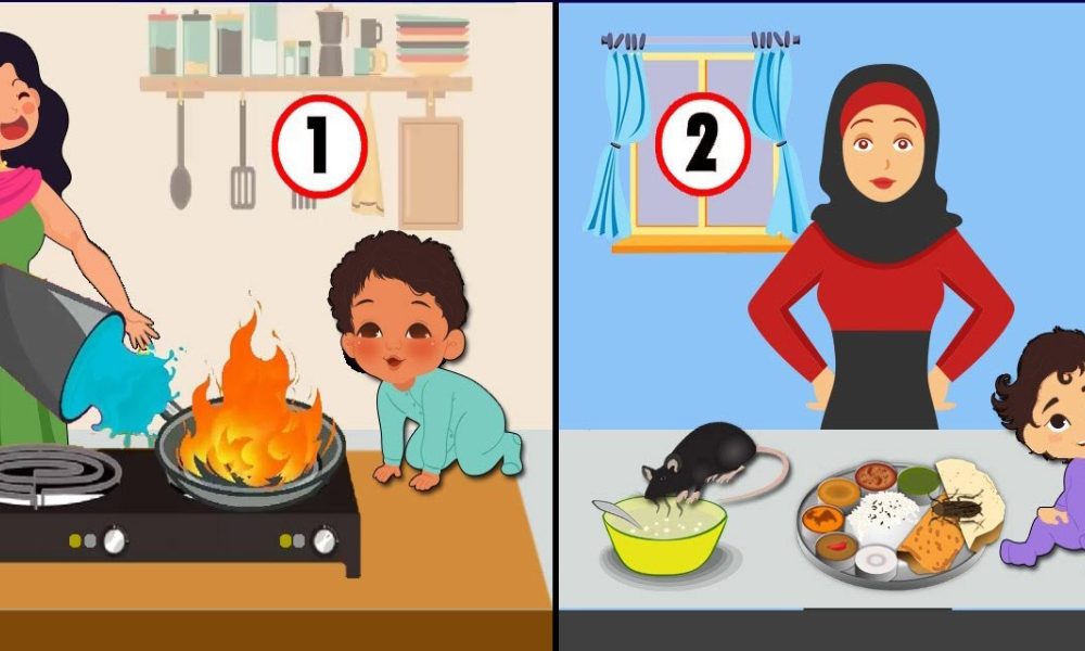 پہلی نمبر والی خاتون آگ بجھانے کے لیے چولہے پر پانی ڈال رہی ہےجس سے صرف چولہا خراب ہونے کا خدشہ ہے لیکن دوسرے نمبر والی خاتون کا کھانا پورا خراب ہوچکا ہے اور بچہ اسے کھانے جا رہا ہے جس سے بچے کی جان بھی جا سکتی ہے کیونکہ کھانا آلودہ ہوچکا ہے۔