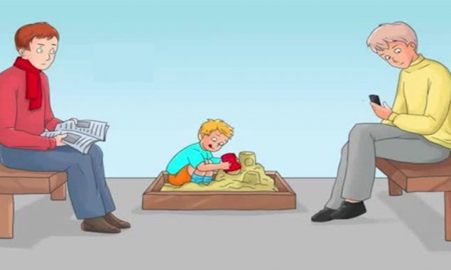 دائیں جانب بیٹھا مرد اپنے فون میں پوری طرح مگن ہے اور اسے بچے کی کوئی پروا نہیں۔