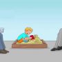 اس کے مقابلے میں بائیں جانب مرد کی نظر اخبار کی بجائے بچے پر ہے تاکہ وہ اس کا خیال رکھ سکے۔