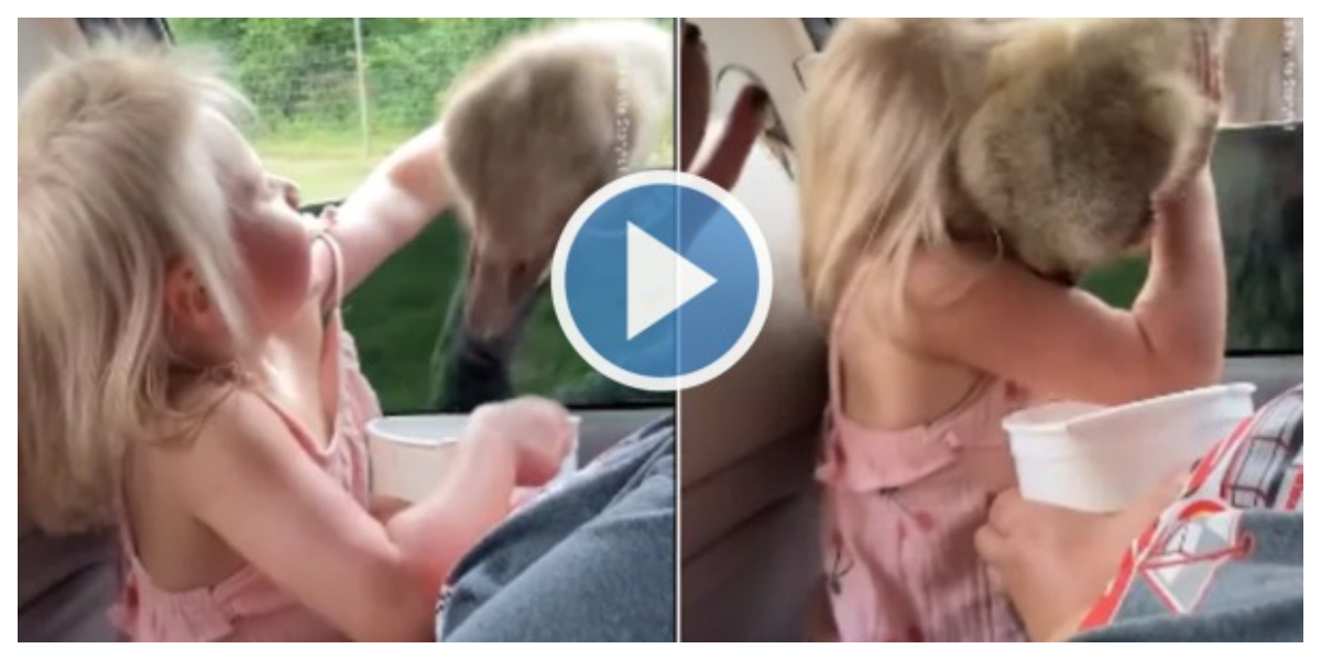 اس ویڈیو میں دیکھا جا سکتا ہے کہ ایک بچی گاڑی میں موجود ہے اور اچانک ایک شترمرغ بچی کی گاڑی کے پاس آتا ہے اوربچی کے ہاتھ میں موجود چیزیں کھانا شروع کردیتا ہے۔