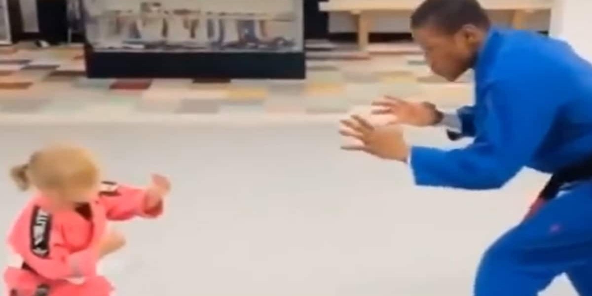 ایک ننھی بچی کی کراٹے کے ماہر کو پٹخنے کی ویڈیو خوب وائرل ہو رہی ہے۔