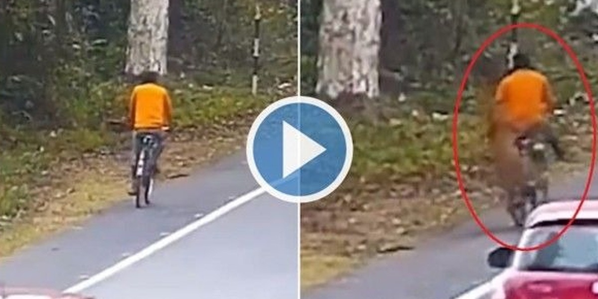 سوشل میڈیا پر وائرل ہونے والی ویڈیو میں دیکھا جا سکتا ہے کہ ایک لڑکا روڈ پر سائیکل چلا رہا ہے کہ اچانک پاس موجود جھڑیوں سے چیتا اُس پر حملہ کر دیتا ہے۔
