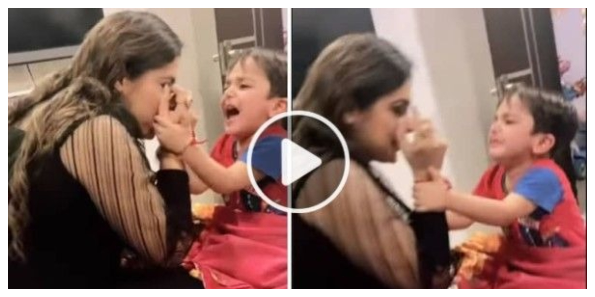 ایک دلچسپ ویڈیو سوشل میڈیا پر گردش کر رہی ہے جس میں ایک چھوٹے بچے کو روتے ہوئے دیکھا جا سکتا ہے جب اسے لگتا تھا کہ اس کی ماں اپنی پلکوں سے خود کو تکلیف دے رہی ہے۔