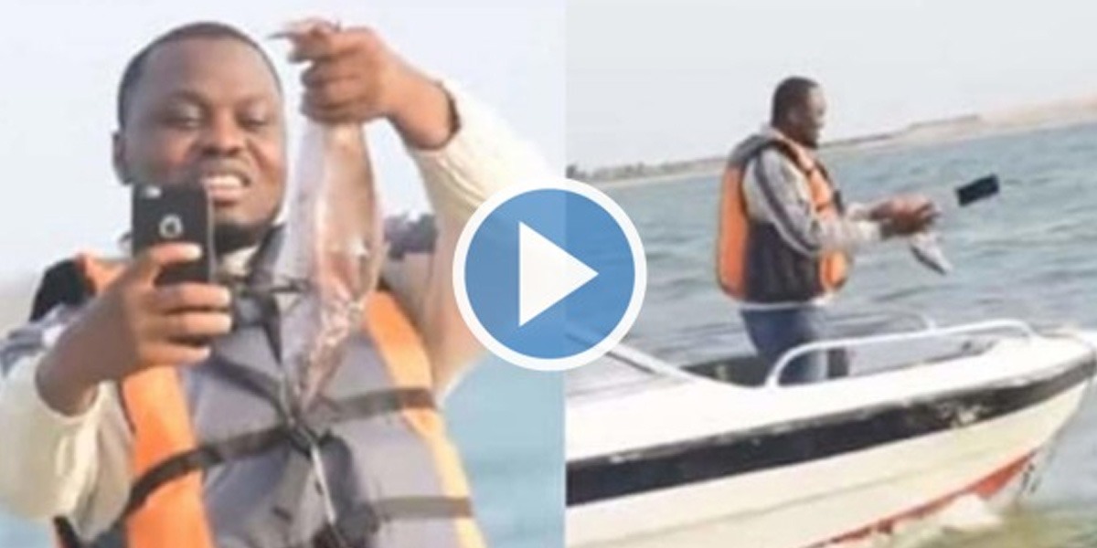 سوشل میڈیا پر وائرل ہونے والی ویڈیو میں ایک شخص کو کشتی پر سوار دیکھا جا سکتا ہے ساتھ ہی اس شخص کے ہاتھ میں مچھلی کو بھی دیکھا جا سکتا ہے۔