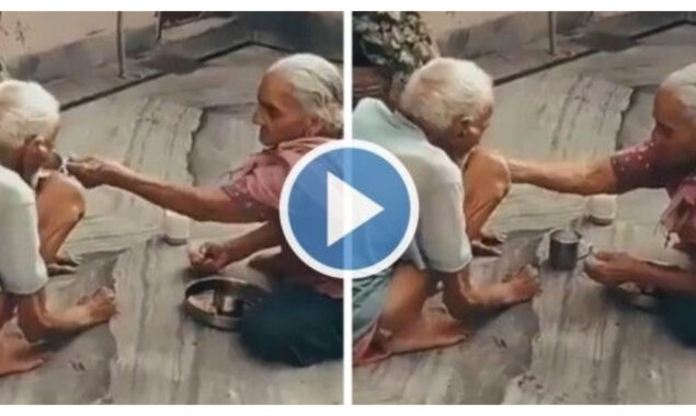 ساتھ ہی ویڈیو میں دیکھا جا سکتا ہے کہ ایک بوڑھی خاتون اپنے شوہر کو اپنے ہاتھوں سے کھانا کھلا رہی ہیں۔