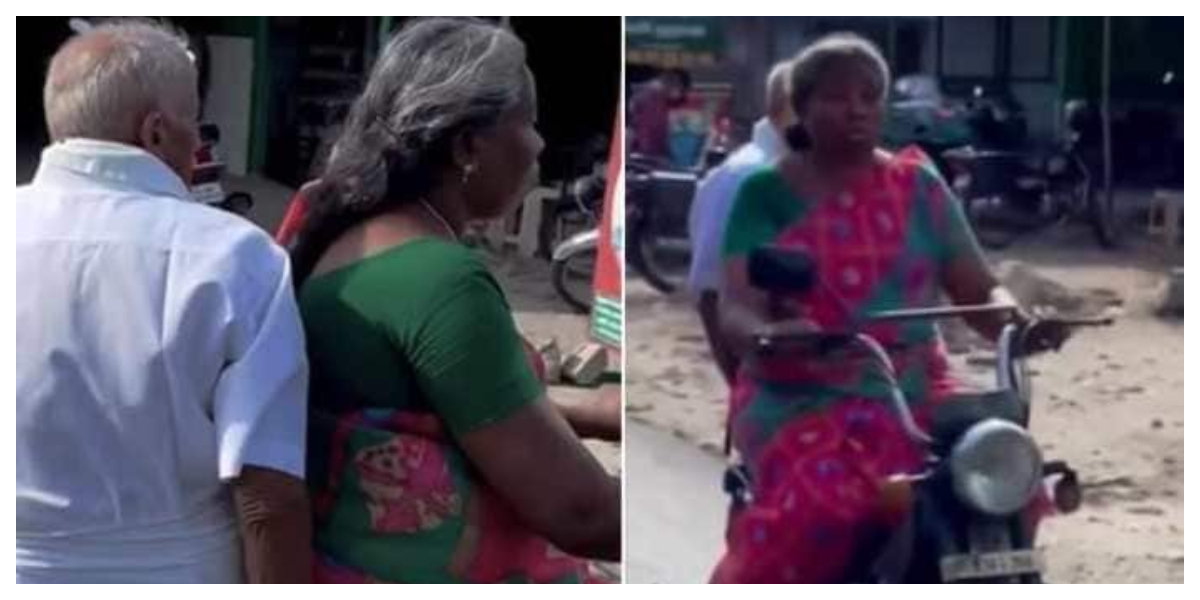 سوشل میڈیا پر وائرل ہونے والی ویڈیو میں بزرگ خاتون کو بائیک چلاتے ہوئے جبکہ ان کے شوہر کو پیچھے ان کے ساتھ بیٹھے ہوئے دیکھا جا سکتا ہے۔