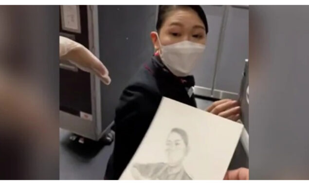 غیر ملکی خبررساں ادارے کے مطابق ایک مسافرنے فلائٹ اٹینڈنٹ کا خاکہ ہی تیارکر لیا۔
