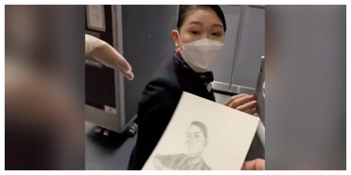 تاہم ایسی ہی ایک ویڈیو سوشل میڈیا پروائرل ہوئی جس میں دیکھا جا گیا کہ ایک مسافر نے فلائٹ اٹینڈنٹ کا خاکہ تیارکیا اور اُسے دینے بھی چلایا گیا۔