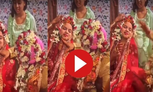 ویڈیو میں دیکھا جا سکتا ہے کہ جیسے ہی پہلی بار دلہا اپنی دلہن کا چہرہ دیکھتا ہے تو چیخنے لگتا ہے۔