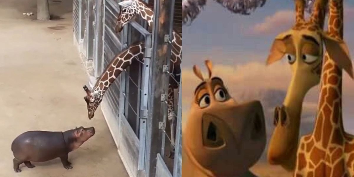 مشہورِ زمانہ کارٹون “مڈغاسکر” کے اہم کردار زرافے اور ہیپو کی حقیقی ملاقات کی ویڈیو نے سب کی توجہ حاصل کرلی۔