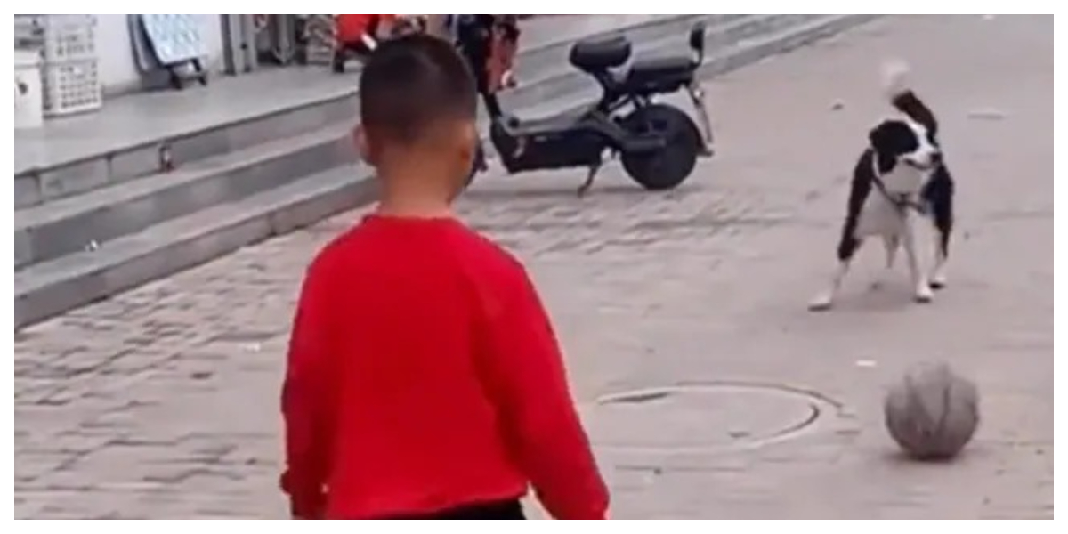 وائرل ہونے والی ویڈیو میں کتے اور بچے کو پاسنگ بال گیم کھیلتے ہوئے دیکھا جا سکتا ہے۔