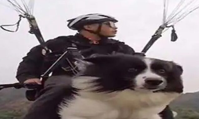 جی ہاں وائرل ہونے والی ویڈیو میں ایک نوجوان لڑکے کے ساتھ اُس کے پالتو کتے کو بھی پیرا گلائیڈنگ سے لطف اندوز ہوتے ہوئے دیکھا جا سکتا ہے ۔