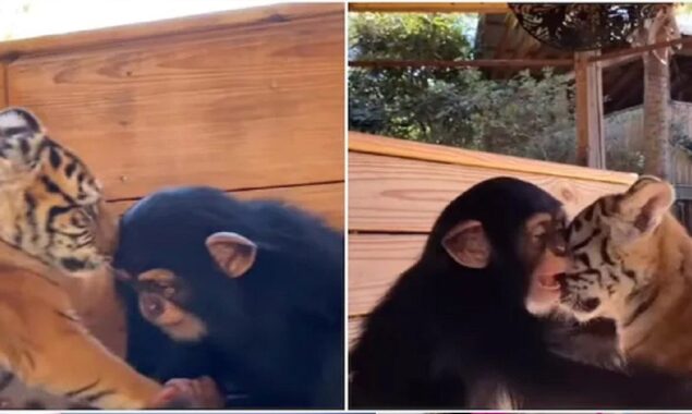 ایسی ہی ایک ویڈیو سوشل میڈیا پروائرل ہو رہی ہے جس میں چیتے اور شیر کے بچے کے ساتھ بندر کے بچے کو بھی مزے سے کھیلتے ہوئے دیکھا جا سکتا ہے۔