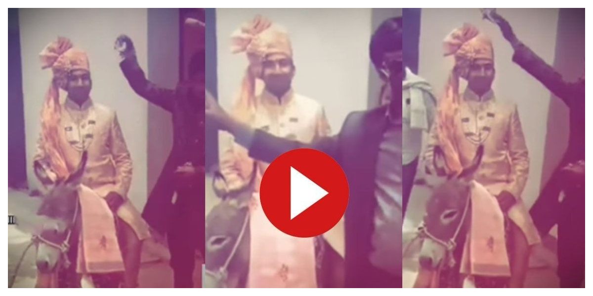 سوشل میڈیا پروائرل ہونے والی ویڈیو میں دیکھا جا سکتا ہے کہ دلہا شیروانی پہنا ہوا ہے اور مکمل تیارہو کرگدھے کے اُوپر بیٹھا ہوا ہے۔