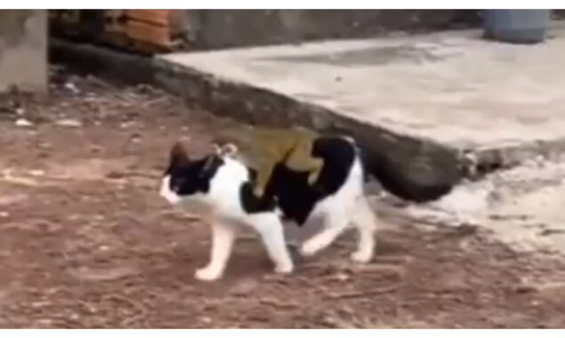سوشل میڈیا پر ایک دلچسپ ویڈیو وائرل ہو رہی ہے جس میں دیکھا جا سکتا ہے کہ ایک جانور بلی کے اُوپر بیٹھ کر بڑے مزے سے سواری کررہا ہے۔