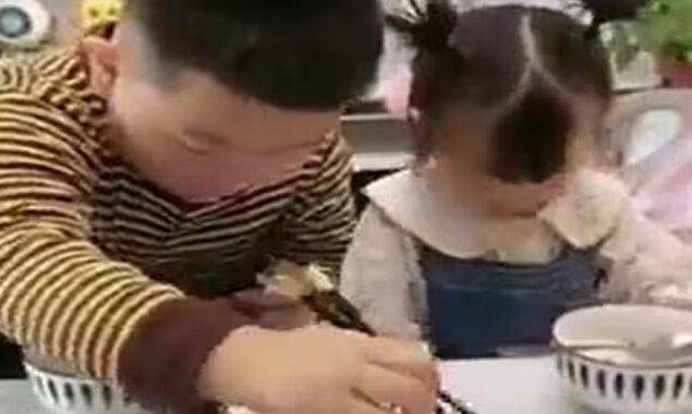 لیکن بھائی فوراً وہ کھانا اپنی بہن کی پلیٹ میں واپس ڈال دیتا ہے۔