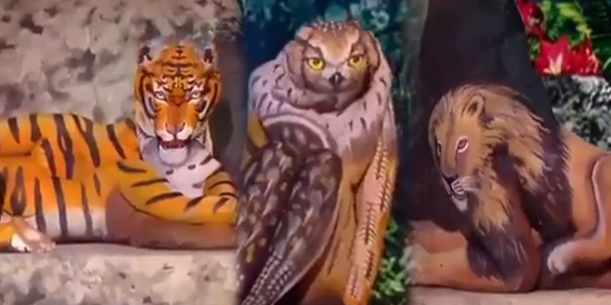 یہ ہی نہیں بلکہ یہ لڑکیاں اس مہارت سے بیٹھی ہے کہ دیکھنے والوں کو یہ اصل جانور ہی لگ رہے ہیں لیکن یک دم وہ اپنے بیٹھنے کے انداز کو جیسے ہی تبدیل کرتی اور اپنا اصل چہرا دکھاتی تو معلوم ہوتا کہ یہ کوئی جانور یہ پینٹینگ نہیں بلکہ ایک لڑکی ہے۔