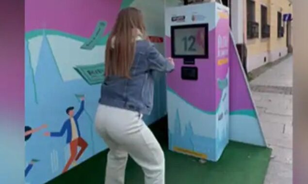 ویڈیو میں دیکھا جا سکتا ہے کہ ایک خاتون کو بوتھ کے سامنے 20 اسکواٹس کر رہی ہیں۔