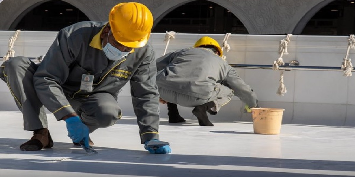 کعبۃ اللہ کی چھت پر غلاف ثبت کرنے کے مقامات کی سلامتی، پتھروں کی کوالٹی اور دو پتھروں کے درمیان خالی جگہ کو مخصوص مادے سے پُرکیا جاتا ہے۔