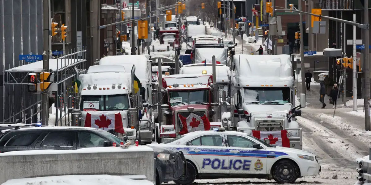 ٹرک ڈرائیورز نے حکومت کی جانب سے ٹرک ڈرائیورز کے لیے ویکسین لازمی لگوانے کی شرط کے خلاف ایک ہفتے قبل ’ آزادی کارواں‘ کی مہم کا آغاز کیا تھا۔