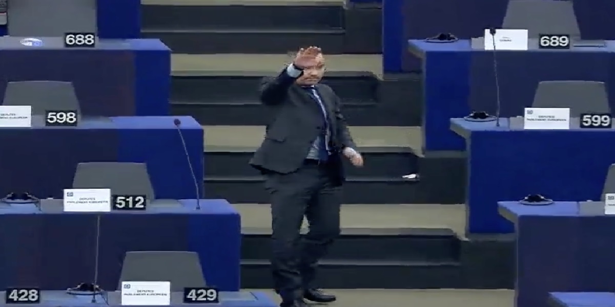 فرانس کے شہر اسٹراسبرگ میں واقع یورپی پارلیمنٹ میں بحث جاری تھی کہ اس دوران بلغاریہ کی قوم پرست جماعت ’’وی ایم آر او‘‘ کے رکن اینگل جومباسکی نے وہاں سے نکلتے ہوئے مبینہ طور پر نازی سلیوٹ کیا۔