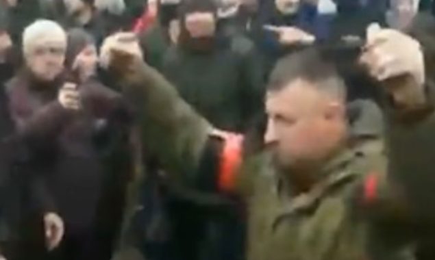روسی فوجی کی یوکرینی عوام کے درمیان ہاتھوں میں گرینیڈز پکڑکر گزرنے کی ویڈیو وائرل ہوگئی۔