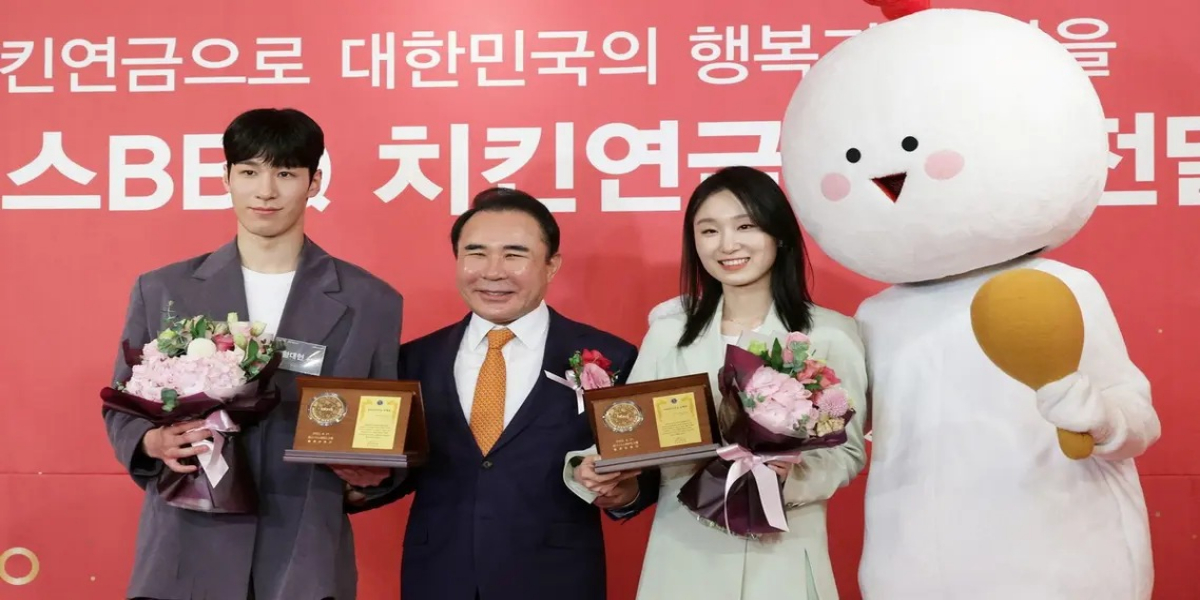 یون جینیسس جو جنوبی کوریا کے سب سے بڑے فرائیڈ چکن ریسٹورنٹ بار بی کیو کے مالک اولمپک میں سونے کا تمغہ تمغہ جیتنے والے ایتھلیٹس کو زندگی بھر کے لیے مفت فرائیڈ چکن فراہم کریں گے۔