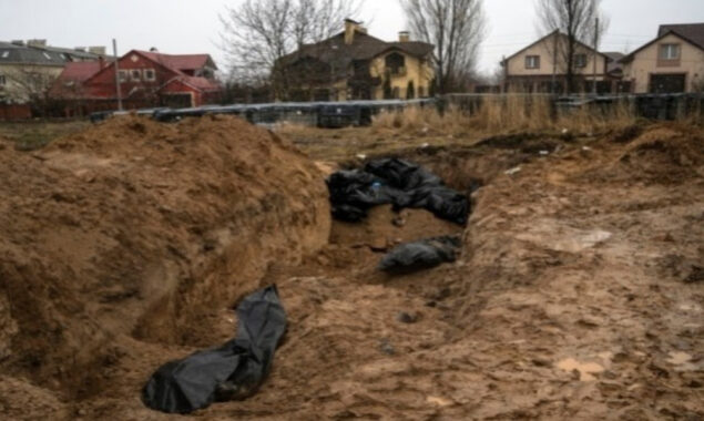 یوکرین کے دارالحکومت کیف کے قریبی قصبے بُوچا میں ایک اجتماعی قبر منظر عام پر آئی ہے جس میں 57 افراد کو دفن کیا ہوا تھا، جس پر یوکرین اور یورپ کے حکام نے روس پر الزام عائد کیا ہے۔