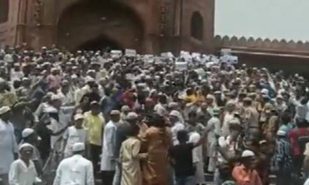 نوپور شرما کے پیغمبر اسلام سے متعلق بیان کے خلاف نئی دلی کی جامع مسجد میں احتجاج کیا جا رہا ہے۔