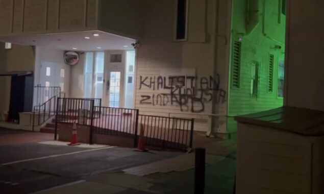 امریکی شہر سان فرانسسکو میں بھارتی قونصل خانے کی دیوار پہ خالصتان زندہ باد کا نعرہ لکھ دیا گیا۔