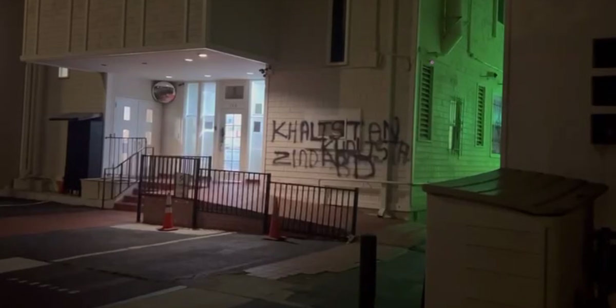 امریکہ میں بھارتی قونصل خانے کی دیوار پہ خالصتان زندہ باد کا نعرہ