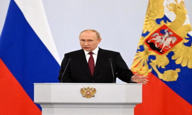 تفصیلات کے مطابق روس کے صدر ولادیمیر پیوٹن نے کریملن میں ایک ٹیلی ویژن تقریب میں یوکرین کے چار علاقوں کو روس میں شامل کرنے کی دستاویزات پر دستخط کیے۔