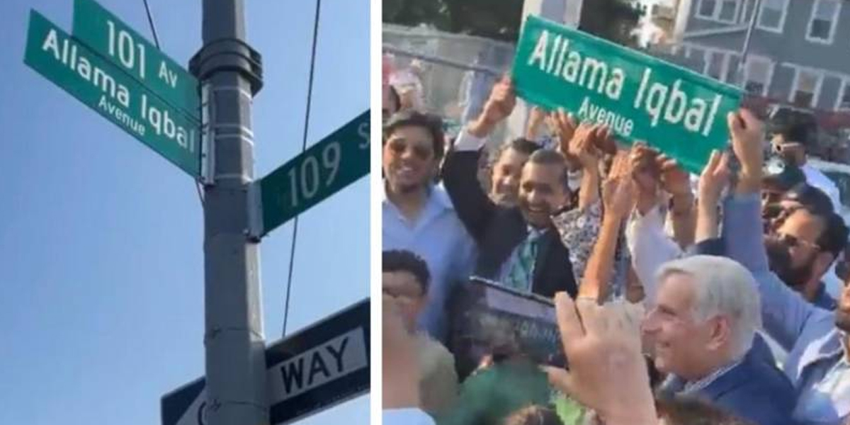 نیو یارک سٹی کے پانچ بورو میں سے سب سے بڑی کوئنز کی ایک اسٹریٹ کا نام پاکستان کے قومی شاعر علامہ محمد اقبال کے نام پر رکھا گیا ہے، جو ایک ہیرو اور بصیرت رکھنے والی شخصیت ہیں جو ادب، فلسفے اور تخلیق کو متاثر کرنے میں ان کے کردار کے لیے جانے جاتے ہیں۔