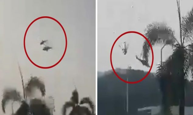 عالمی میڈیا رپورٹ کے مطابق ملیشیاء کی رائل نیوی کے ہیلی کاپٹرز کی جانب سے کارکردگی کا مظاہرہ کیا جا رہا تھا کہ اسی دوران 2 ہیلی کاپٹر ایک ہی سمت جاتے ہوئے ٹکرا گئےاور موقع پر ہی نیچے جاگرے۔