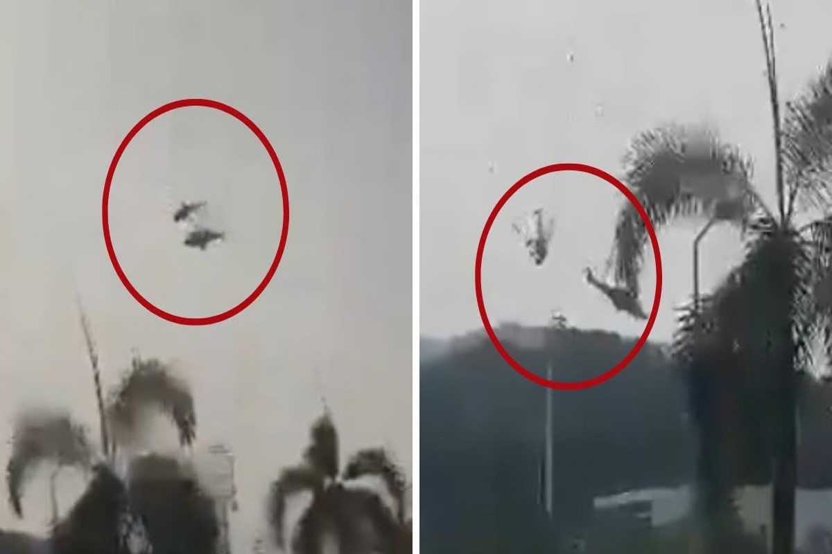 عالمی میڈیا رپورٹ کے مطابق ملیشیاء کی رائل نیوی کے ہیلی کاپٹرز کی جانب سے کارکردگی کا مظاہرہ کیا جا رہا تھا کہ اسی دوران 2 ہیلی کاپٹر ایک ہی سمت جاتے ہوئے ٹکرا گئےاور موقع پر ہی نیچے جاگرے۔