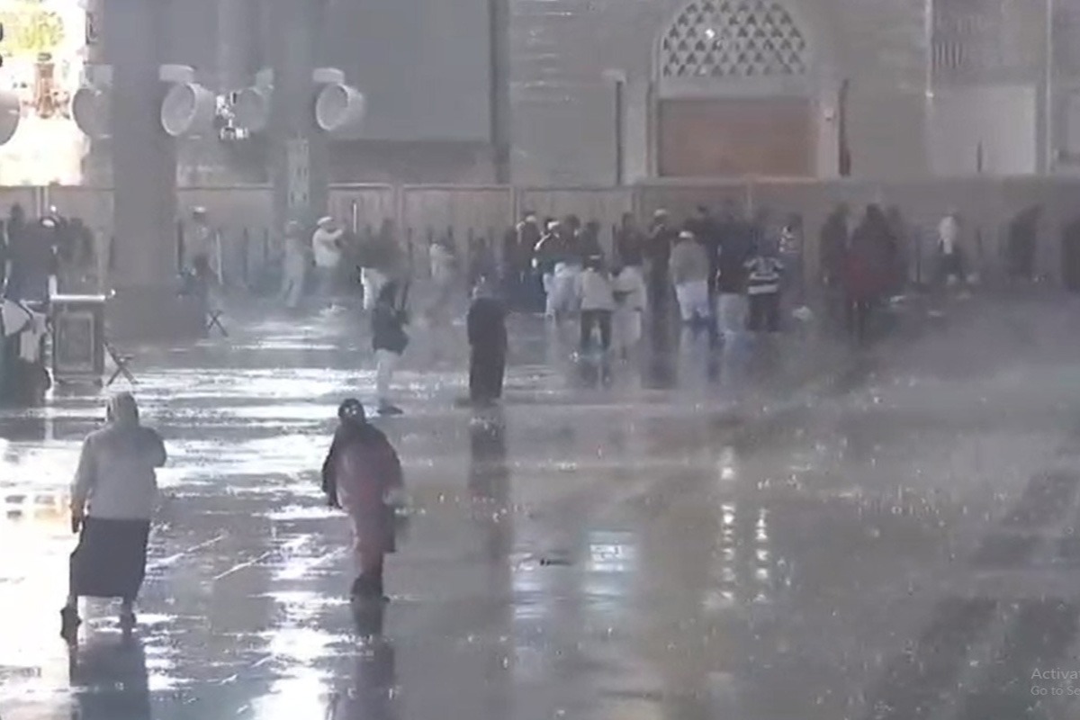 مسجد نبویؐ میں بھی باران رحمت خوب جم کر برسی، عمرہ زائرین اور مقامی افراد نے بارش کے برسنے پر اللہ تعالیٰ کا شکر ادا کیا ہے۔