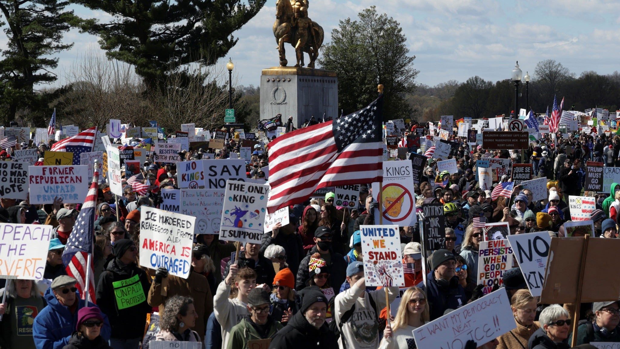 امریکا بھر میں صدر ڈونلڈ ٹرمپ کے خلاف ’نو کنگز‘ مظاہرے شروع ہوگئے اور ٹرمپ انتظامیہ کے خلاف امریکا بھر میں ریلیاں نکالی جا رہی ہیں ان مظاہروں کی کال امریکی سینیٹر برنی سینڈرز نے دی تھی۔