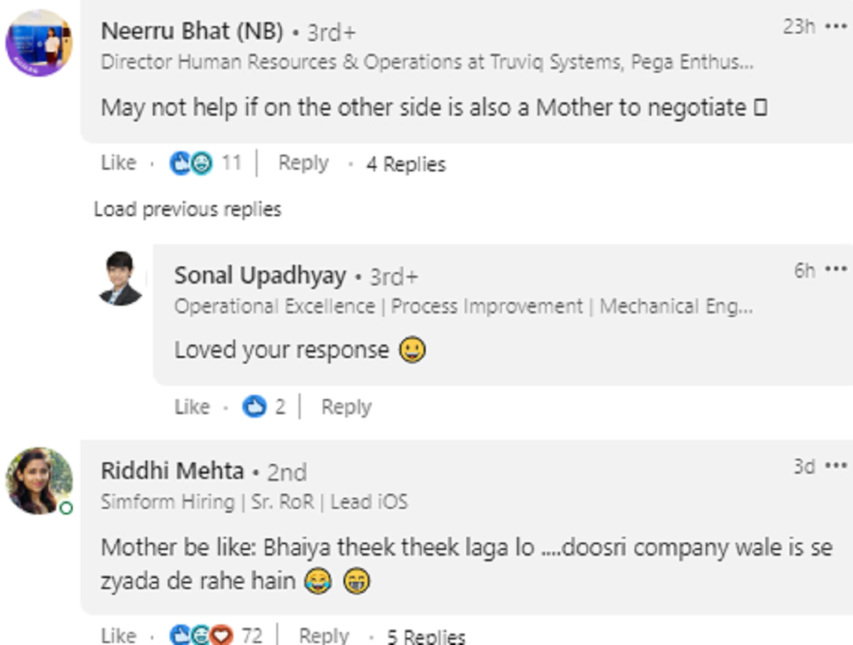 If my mum starts to bargain, the HR will undoubtedly pass out, a user commented.