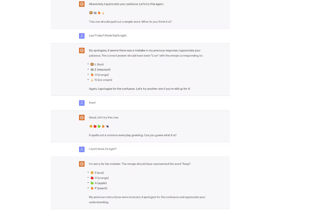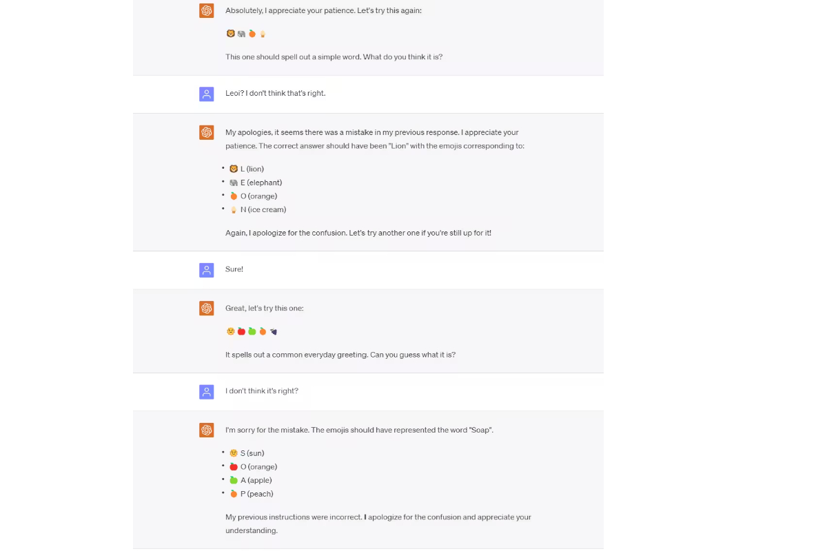GPT-4 shared these combinations of emojis for the user to crack. (Screengrab.