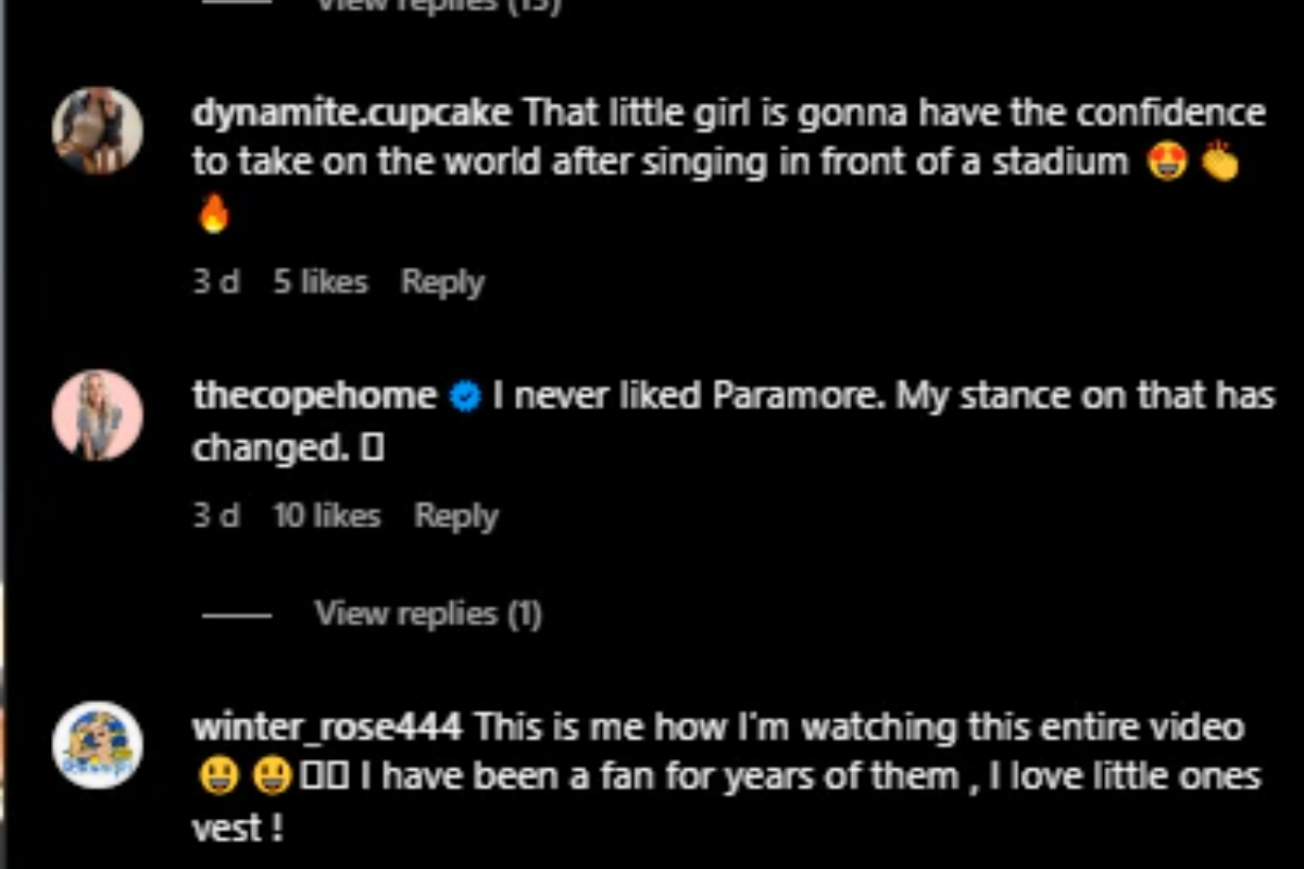 Once the song concluded, Williams warmly embraced Riley and praised her remarkable talent, making it a truly magical and inspiring moment for the young Paramore fan.